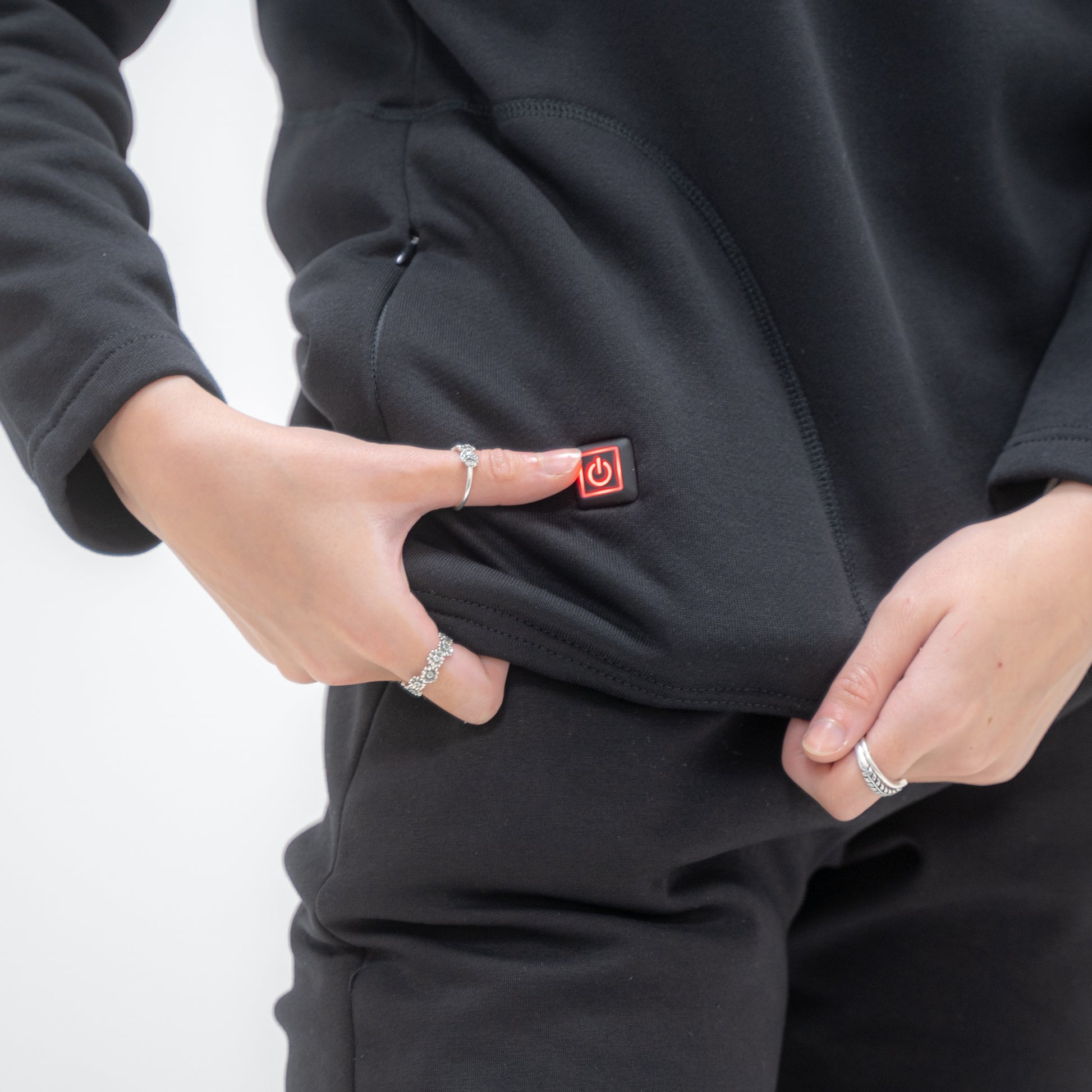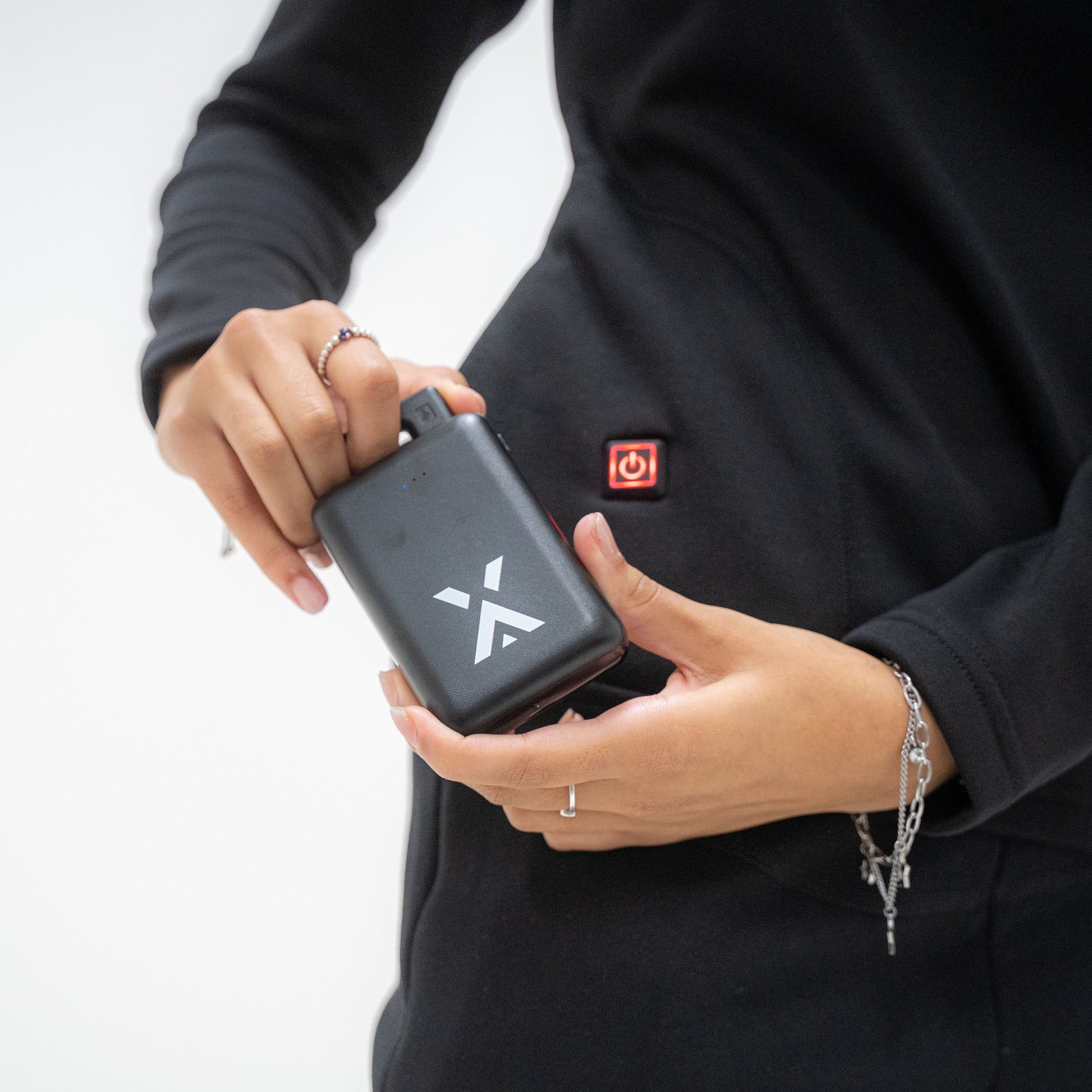 3) Turn on the power bank and press the on buttons that are connected to the cables. Adjust to desired temperature.